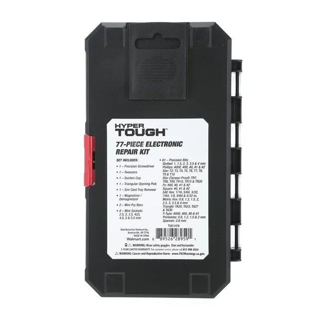 Product details The New Hyper Tough 77 piece TECH KIT is great for those projects where you need precision. Whether you are working on your cell phone, computer or any electronics this kit has the...
